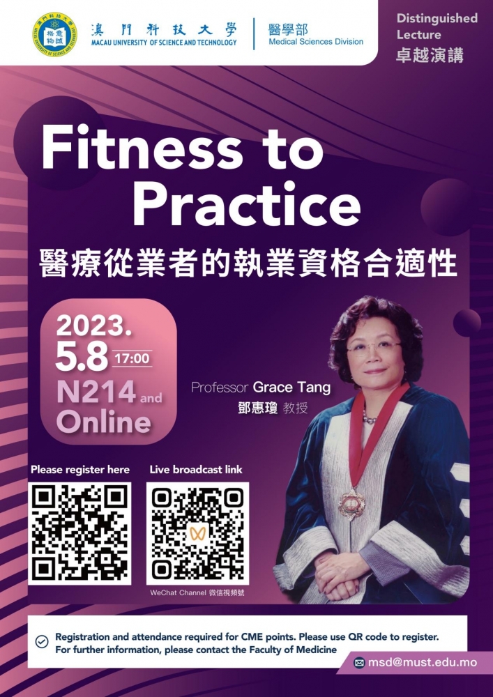 由澳門科技大學醫學部擔任學術主持、並由澳門健康管理及促進學會主辦的「卓越演講系列講座暨中葡國際醫學論壇」已於2023年10月31日假澳門雅辰酒店宴會廳順利舉行。論壇邀請了英國愛丁堡皇家外科學院前院長兼...