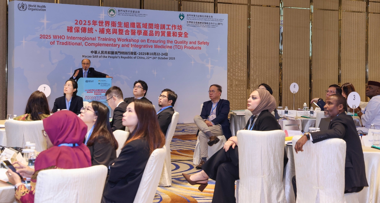 世卫区域间培训工作坊一连3天在本澳举行,来自22个世卫成员国/地区(其中16个「一带一路」沿线国家/地区及5个葡语系国家)共约60位传统医学官员、专家学者及从业人员齐聚本澳,共同探讨传统、补充与整合医学产品的质量与安全。