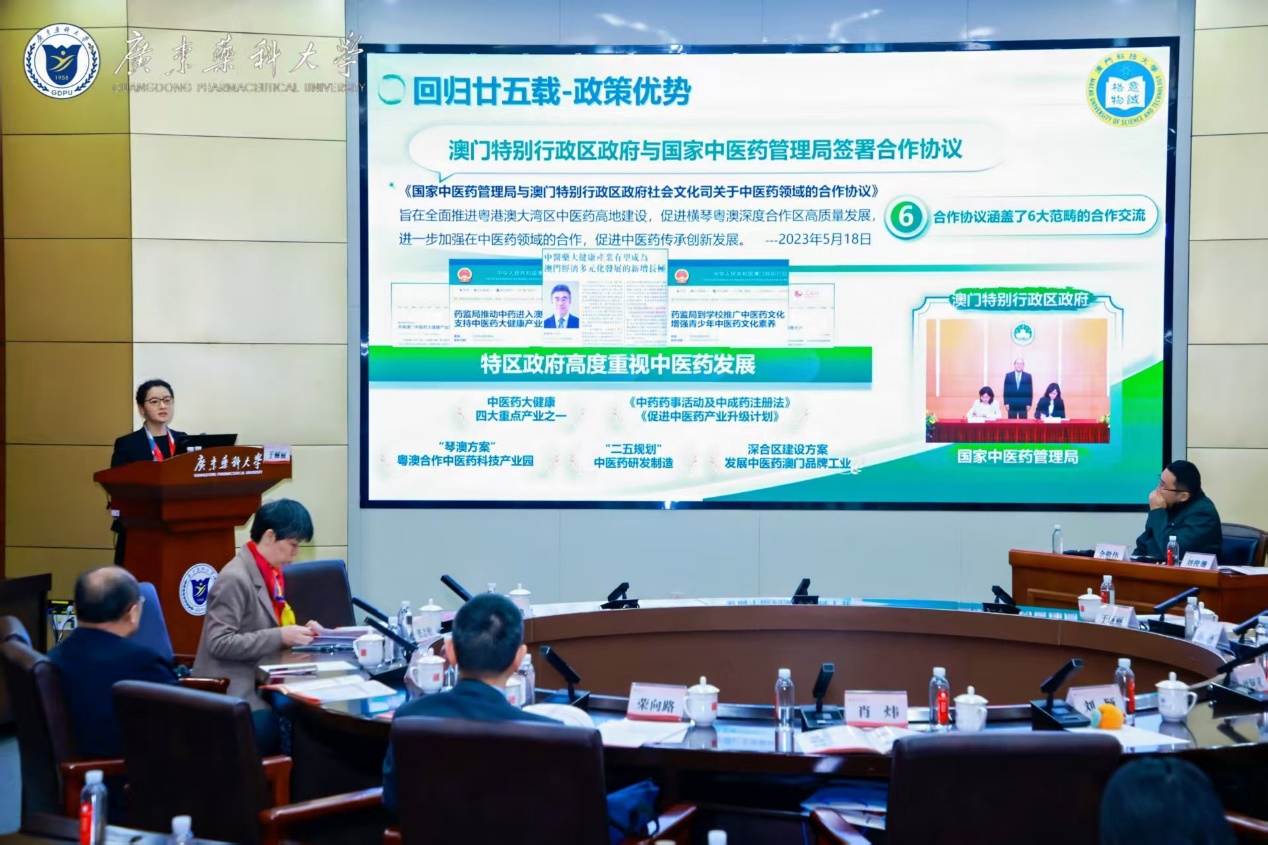 论坛邀请内地多所高校的学者,围绕中医药传承创新、中药研发与人才培养,尤其是中西医结合学科的学术前沿、学科学位建设、创新创业和研究生学术深造等方面内容展开交流。广东药科大学副校长肖炜教授致开幕辞,介绍广药大依托学科优势,积极服务国家战略与区域发展的历程情况。研究生院刘颖院长介绍了广药大深化粤港澳教育合作、强化育人平台的具体举措。澳科大中医药学院于丽丽副教授介绍了澳门特别行区中医药产学研的发展现况及粤澳合作愿景,尤其是大学在研究生培养、科研方面的成果及内地学生赴澳门深造的路径、机遇等情况。论坛还设置了「中西医结合研究生培养答疑解惑」环节,师生就学业规划、职业发展、科研创新等关注问题现场交流互动。