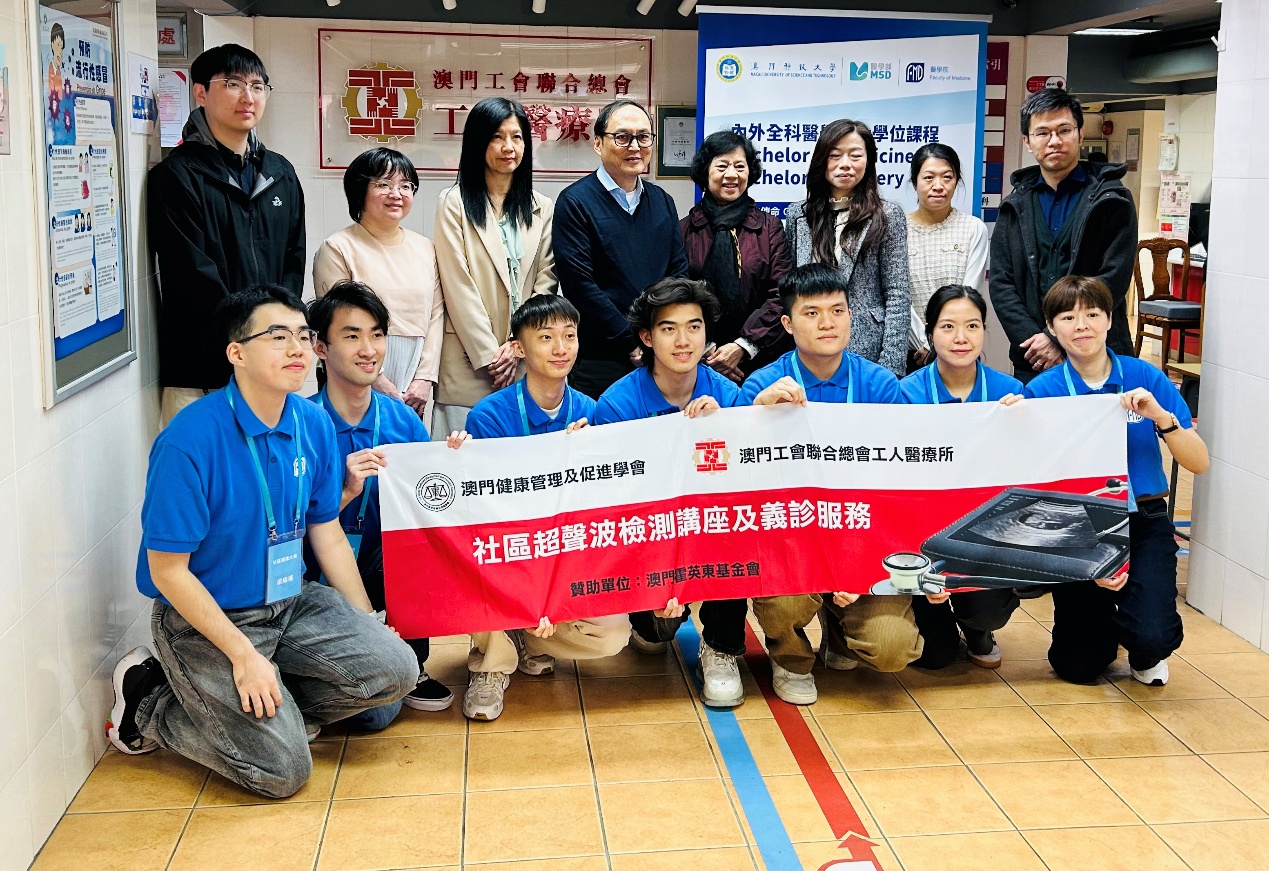 澳门科技大学医学院于2026年1月31日及2月1日联同澳门健康管理及促进学会和澳门工会联合总会工人医疗所举办了 “小区超声波检测讲座及义诊服务”活动,吸引逾200位市民报名参加,为本澳小区提供了爱心医疗服务。