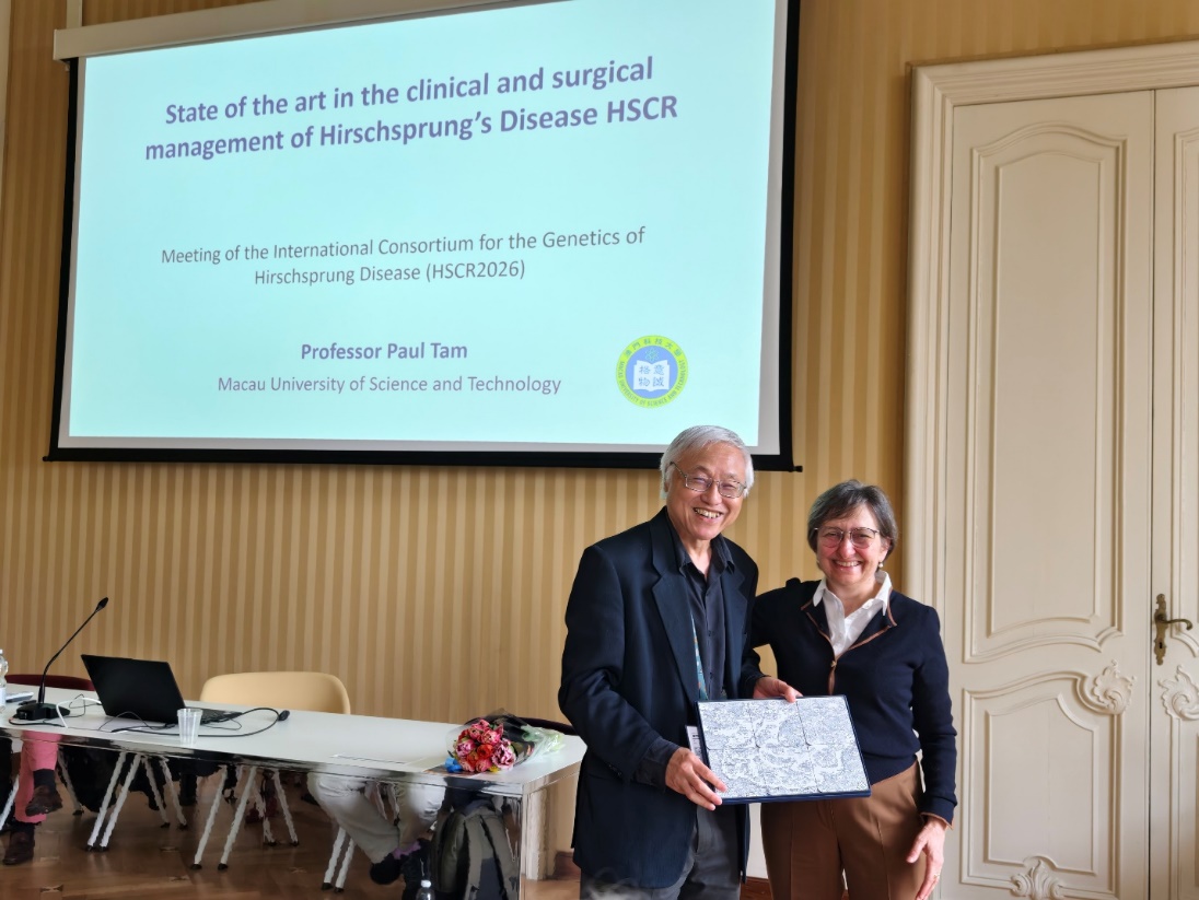 4月12日,譚廣亨副校長帶領澳科大精準再生醫學研究中心教師及學生代表,參加在意大利熱那亞舉行的先天性巨結腸症(Hirschsprung disease, HSCR)國際學術會議。該會議由國際先天性巨結腸症遺傳學聯盟主辦,匯聚來自美洲、歐洲、亞洲及其他國家和地區的多位知名學者。會議期間,譚廣亨副校長作大會主旨報告,重點闡述人類遺傳學研究在先天性巨結腸症領域的重要科學貢獻、當前面臨的關鍵問題及未來發展方向。本次會議重點圍繞 HSCR 的遺傳學基礎、臨床與外科管理等不同方向展開深入交流,並系統展示該領域的最新研究進展,表明當前 HSCR 研究正由單基因和候選基因研究,逐步邁向更加系統的基因組學、轉錄組學和疾病分層研究,為精準診斷、機制解析及個體化干預提供了新的方向。